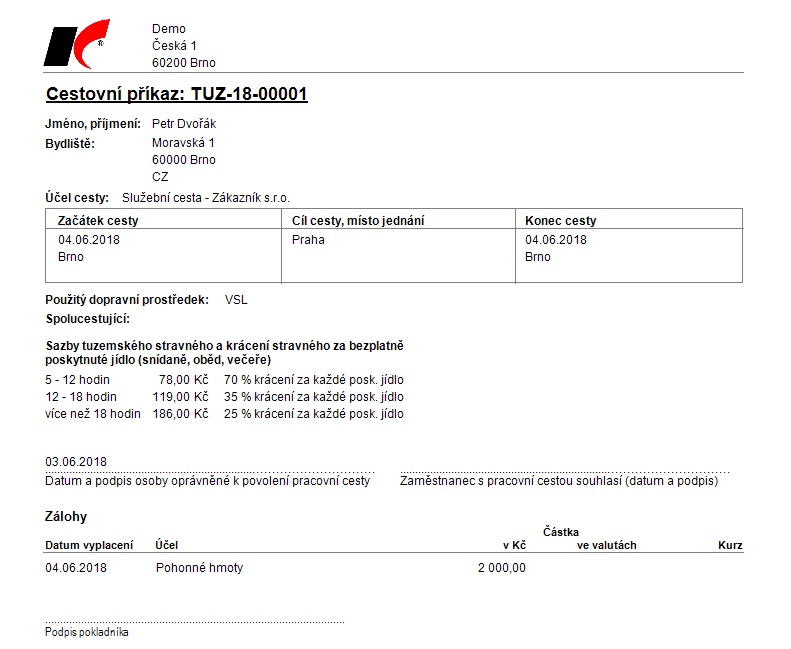 Modul Cesty umožňuje zejména zpracování a evidenci: