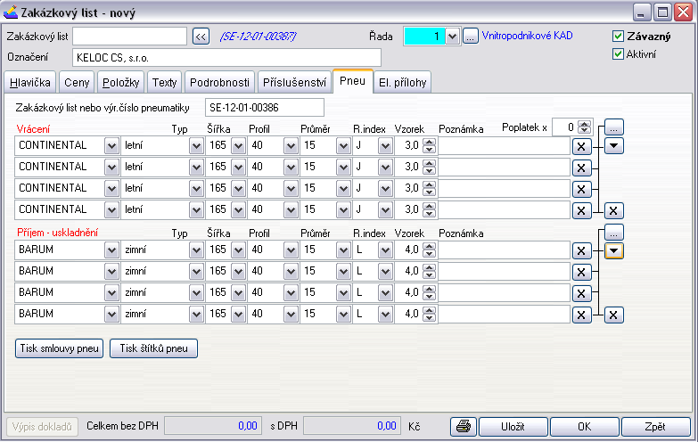 - přidělování náhradních dílů z číselníku přímo k zakázce (propojení s modulem Sklad)